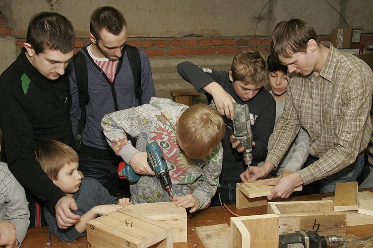 Ну и конечно же, мы традиционно делали скворечники и синичники, чтобы приготовить достойное городское жилье со всеми удобствами для птиц, которым приходится жить в столице.