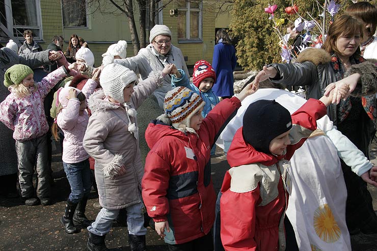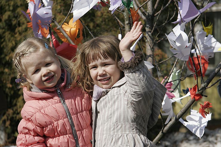 Поэтому в конце праздника мы отправились на улицу — закликать птиц и весну (и они не преминули откликнуться — через час разноголосица птичья буквально наполнила сад и окрестные дворы, а солнечные лучи до позднего вечера согревали стосковавшуюся по ним землю). Наряжали символическое Весеннее дерево — с пожеланиями любви и света на весь год, вешали скворечники и отпускали «наших» птиц — в Небо!