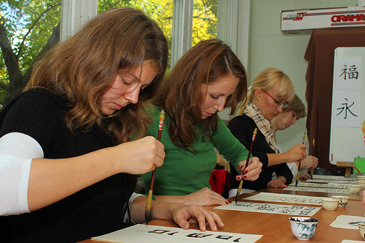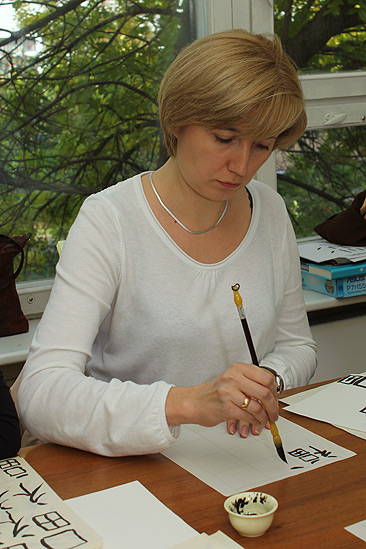 Китайская письменность – это не просто нанесение изображений на бумагу, это целая философия, где каждое движение, каждый штрих несет в себе глубокое значение. В конце занятия каждый нарисовал иероглиф, обозначающий «счастье». Хотя у всех получились одинаковые изображения, представления о счастье у каждого свои и, в соответствии с китайской мудростью, этот иероглиф будет привлекать в дом именно то счастье, о котором человек мечтает.