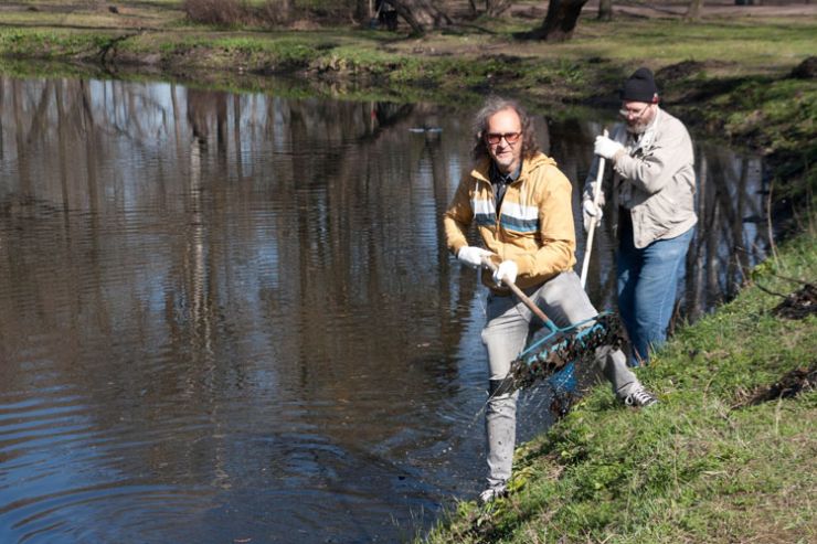 Волонтеры убирали территорию в дальней части парка - вокруг канала и пруда.