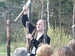 Акропольцы разбились по командам и засучив рукава принялись за работу. Каждому нашлось занятие по душе: кто-то с упоением обтесывал бревна, кто-то обжигал их паяльной лампой, кто-то покрывал олифой. А в это время рядом вырастал «стог» тростника.