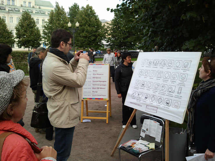 Лучшим аттракционом дня стало «Колесо достоинств». Вереница желающих услышать подсказку от судьбы к мучающему вопросу или давно задуманной мечте — что могло бы стать верной нотой и катализатором ее осуществления — протянулась практически на полбульвара.