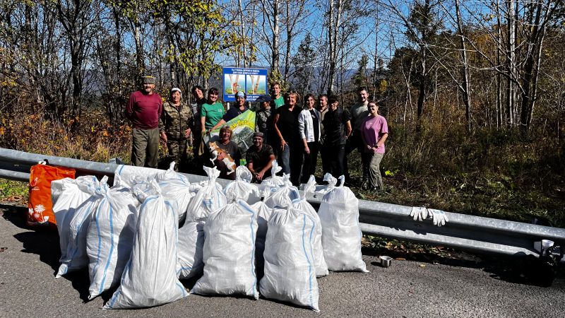Осень начала спускаться с гор, расцвечивая лес и согревая теплым нежным солнцем. Мы, волонтеры школы философии «Новый Акрополь» и представители г. Партизанска (Туристический «Клуб Любителей Летящей Воды» и казачество) проведали перевал Серебряный. Прошло 5 лет с момента первой масштабной акции по очистке склонов и освобождению деревьев, после первой акции мы возвращались туда не раз и совместными усилиями старались поддерживать чистоту. В этот раз уборка не заняла много времени: мы очистили обочины, срезали ленточки с ветвей и установили еще одно напоминание о бережном отношении к деревьям.